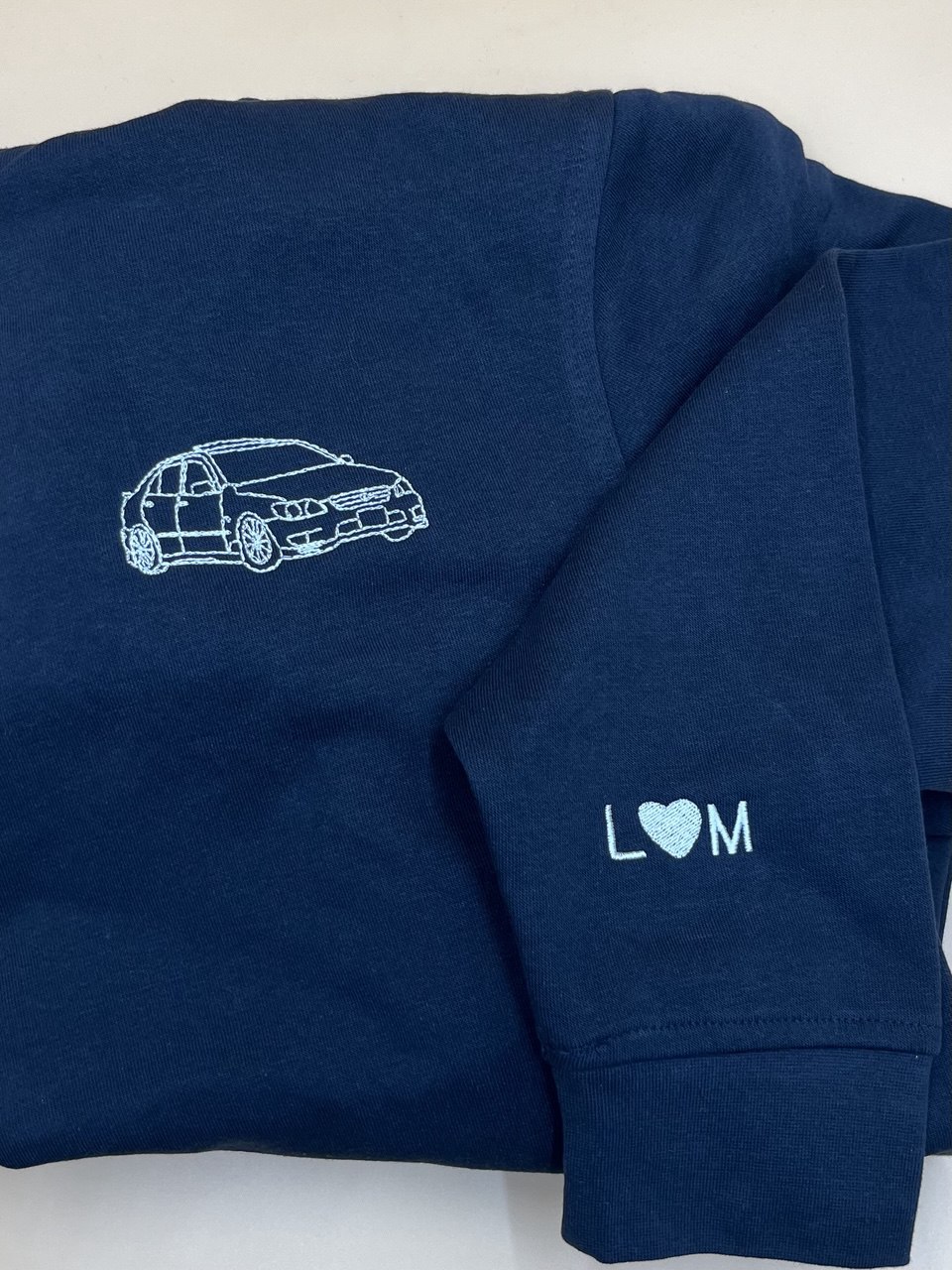 Chcesz uwiecznić swój pojazd w wyjątkowy sposób? Nasza usługa haftu ze zdjęcia to idealne rozwiązanie! Wystarczy, że prześlesz nam zdjęcie swojego samochodu, motocykla lub innego pojazdu, a my zajmiemy się resztą. Unikatowy, wysokiej jakości haft, który może ozdobić bluzę lub koszulkę To doskonały pomysł na prezent dla miłośników motoryzacji, pamiątkę związaną z Twoim pojazdem lub stylowy dodatek dla siebie!- Prześlij zdjęcie swojego pojazdu – może to być Twój samochód lub motocykl