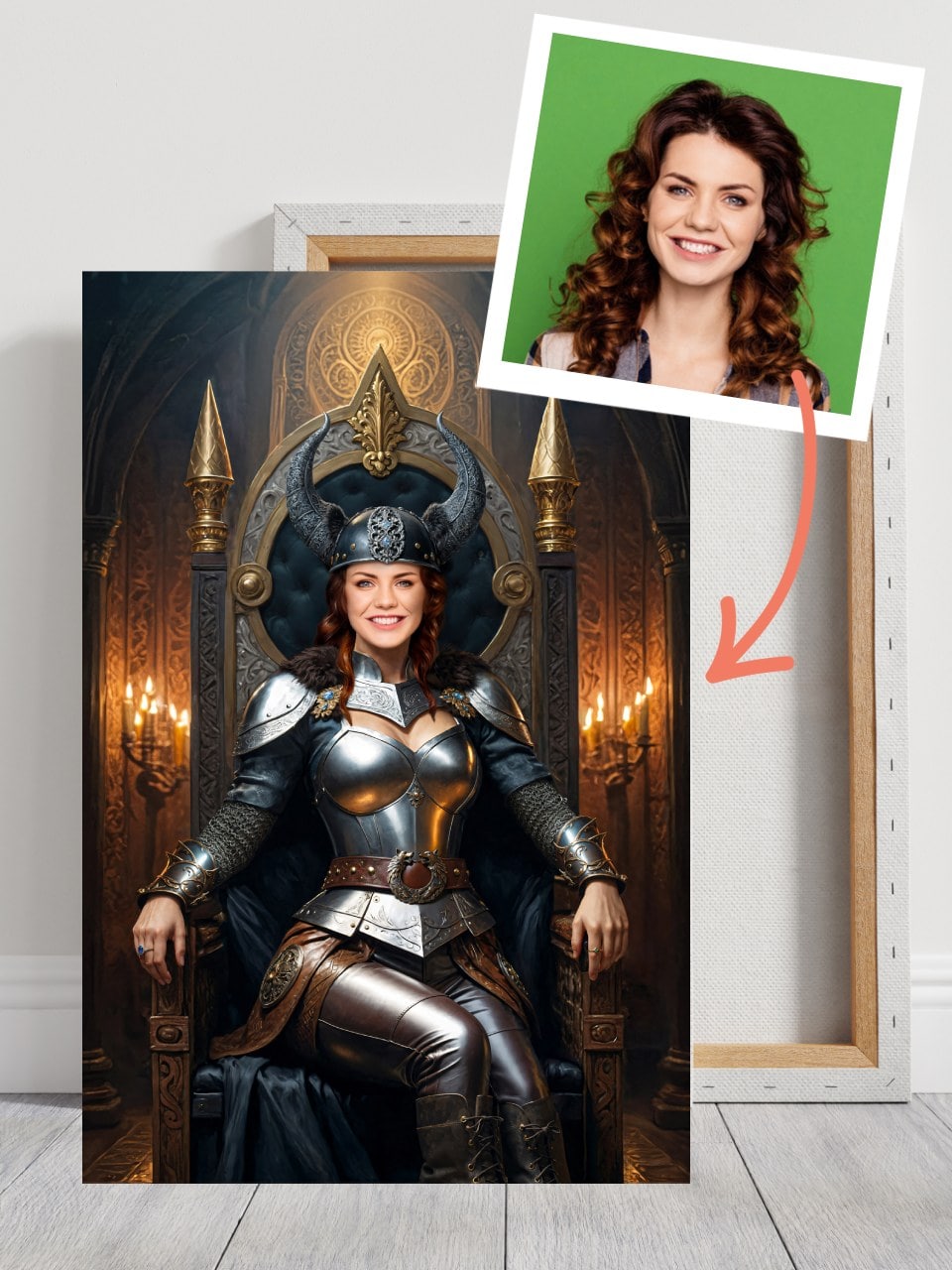 Stwórz unikalny portret Królowej z własnego zdjęcia – ręcznie retuszowany i drukowany na najwyższej jakości płótnie.